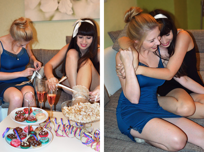 “Best friends make the good times better and the hard times easier.” Die guten Zeiten werden heute von uns gefeiert – mit einem Mädelsabend, einer Pyjamaparty wie wir sie vor Jahren zuletzt hatten. Ein paar Stunden ganz für uns, in denen Jungs überflüssig sind, es sei denn man quatscht über sie. Ein Abend an dem Diätvorhaben gegen süße Leckereien eingetauscht werden, die High Heels gegen Puschelschuhe, das schicke Outfit gegen Pyjama und Nachthemd und die Frisur egal ist. Das gibt es viel zu selten bei uns, umso mehr wurde es zelebriert. Mit Mädchenfilmen, Jules Mumm Sekt und Papierschlangen. Mit Kissenschlacht, Lachkrampf und Zuckerschock. So ein richtiger Mädelsabend muss einfach hin und wieder sein. Unsere Top Five für die perfekte Pyjamaparty: