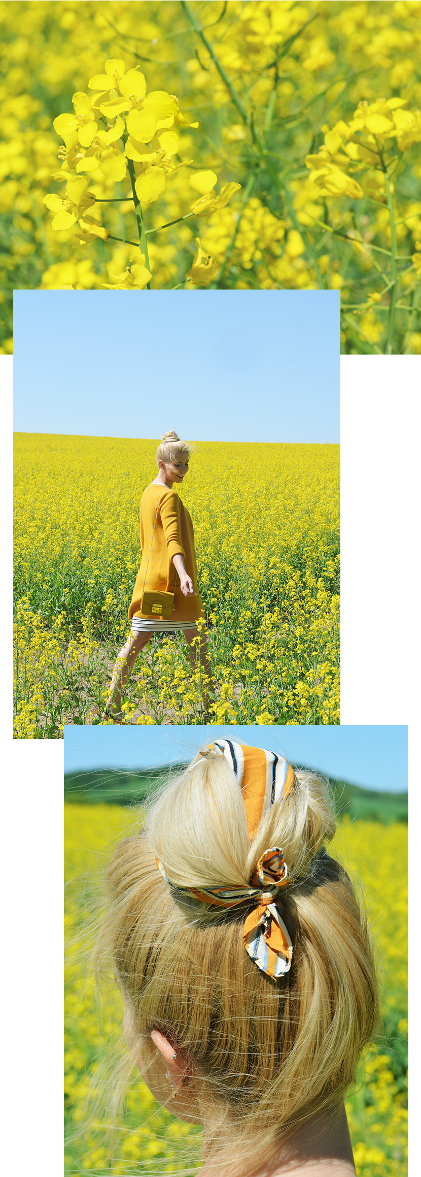 Wusstet ihr, dass Van Goghs Sonnenblumen extra für den Besuch seinen Freundes Gauguin gemalt wurden? Seit wir am Ende eines wundervollen Londontrips am Abreisetag in der National Gallery vor eben diesem Bild standen und die Geschichte dazu lasen stand für mich fest, Gelb steht für Freundschaft. Und so liebe ich weiter alles was Gelb ist, auch die gelben Meere aus Rapsblüten, die überall um Hamburg herum blühen soweit man etwas ländlicher rausfährt. Gelb soweit das Auge reicht, dazu ein kitschig blauer Himmel und ich mittendrin. Manchmal muss genau das sein.